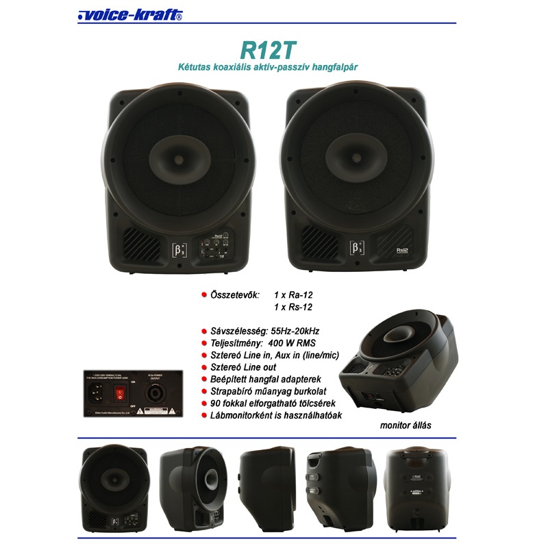 R12T Aktív-passzív hangfalpár, 12", 2x200W
